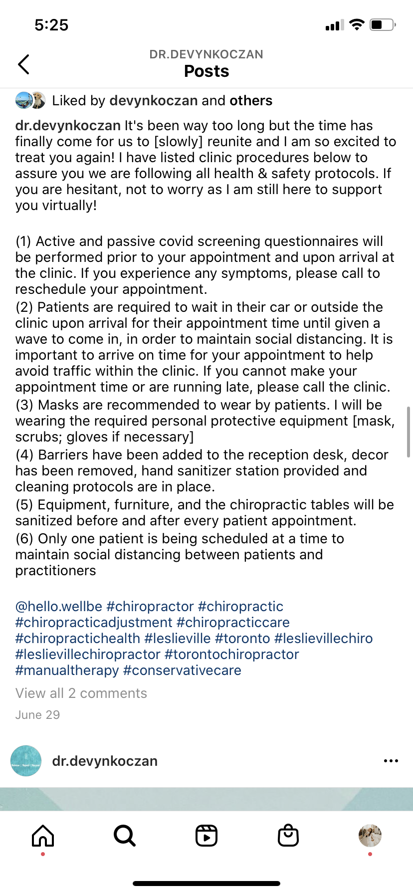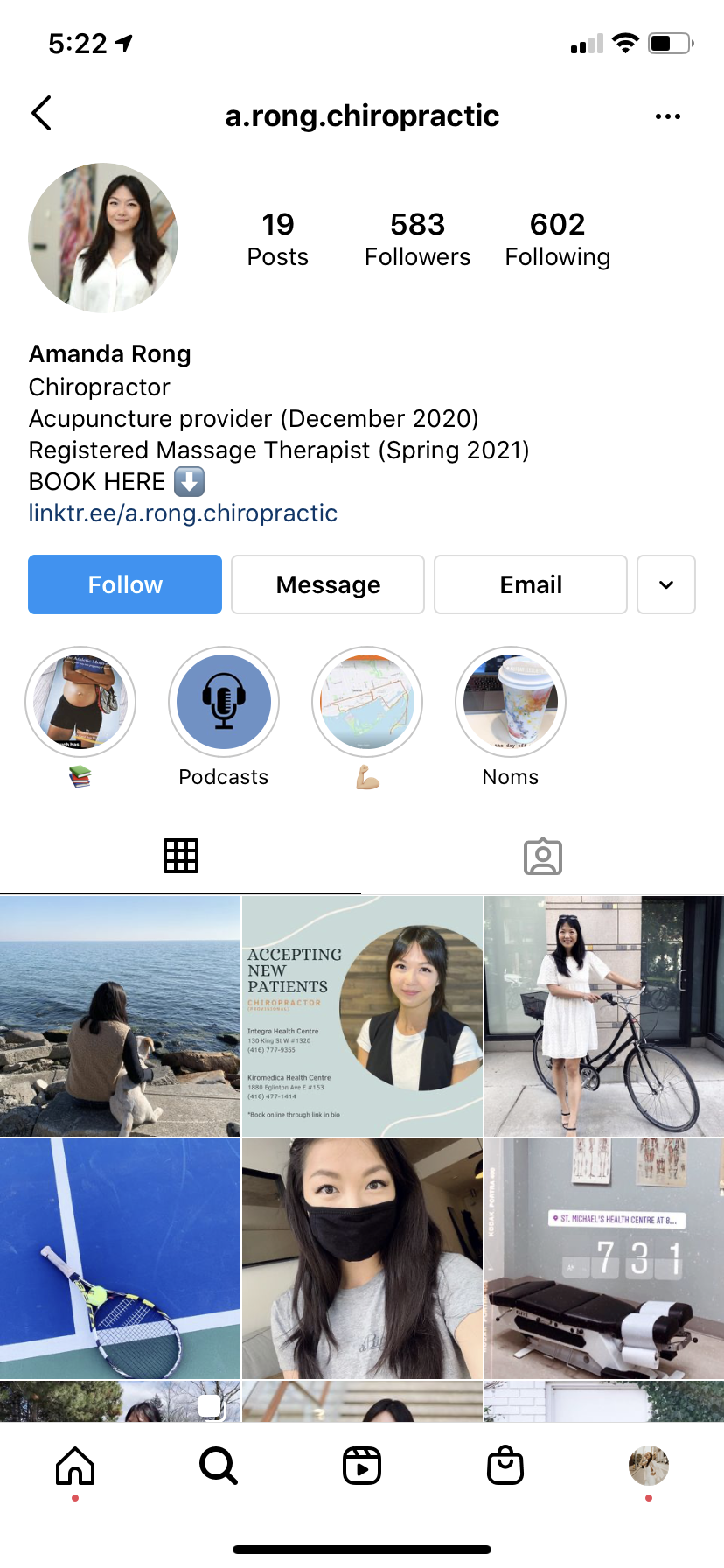 #’s: use strategic and relevant hashtags to make yourself “findable” by others who are either following the hashtag itself (so flagged it as something they’d have interest in) or who are using #’s to find something specific. Ex. #Chiropractor #Toronto #TorontoChiropractor. I typically avoid using too many of them myself, or, if you choose to use lots, put them at the end of your post so it doesn’t seem overwhelming. Technically you can have up to 30.