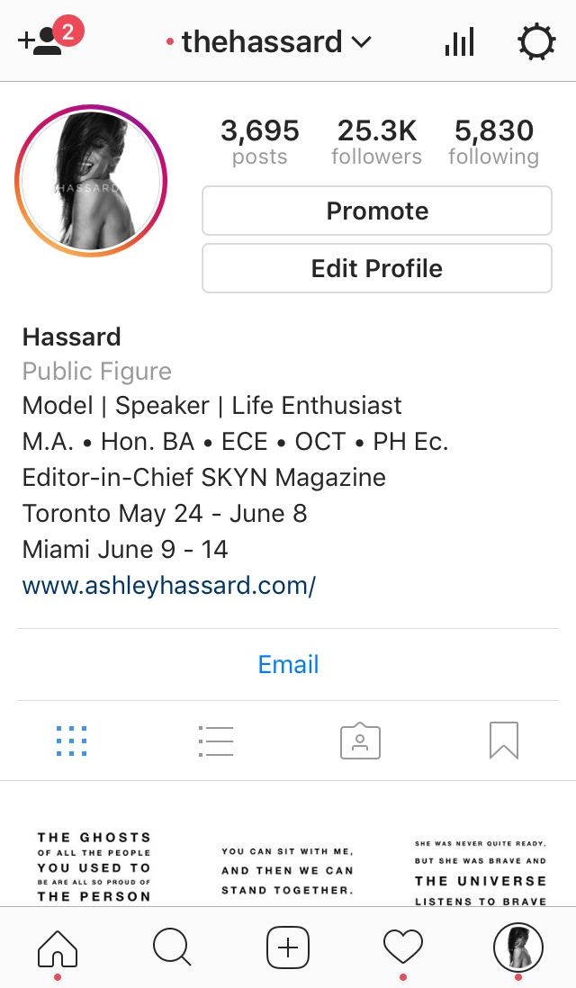 @TheHassard delivers one of the most engaged social media fan bases, with content sparking conversation among friends, followers, and fans alike. My posts are curated, thoughtful, inspirational, and unique. I try not to be just eye candy, but also soul food - and I encourage everyone around me to be the same. The secret to my success is that I'm the perfect balance of genuinely relatable and achievably aspirational. I'm the girl next door living out her dreams and encouraging others do to so too.